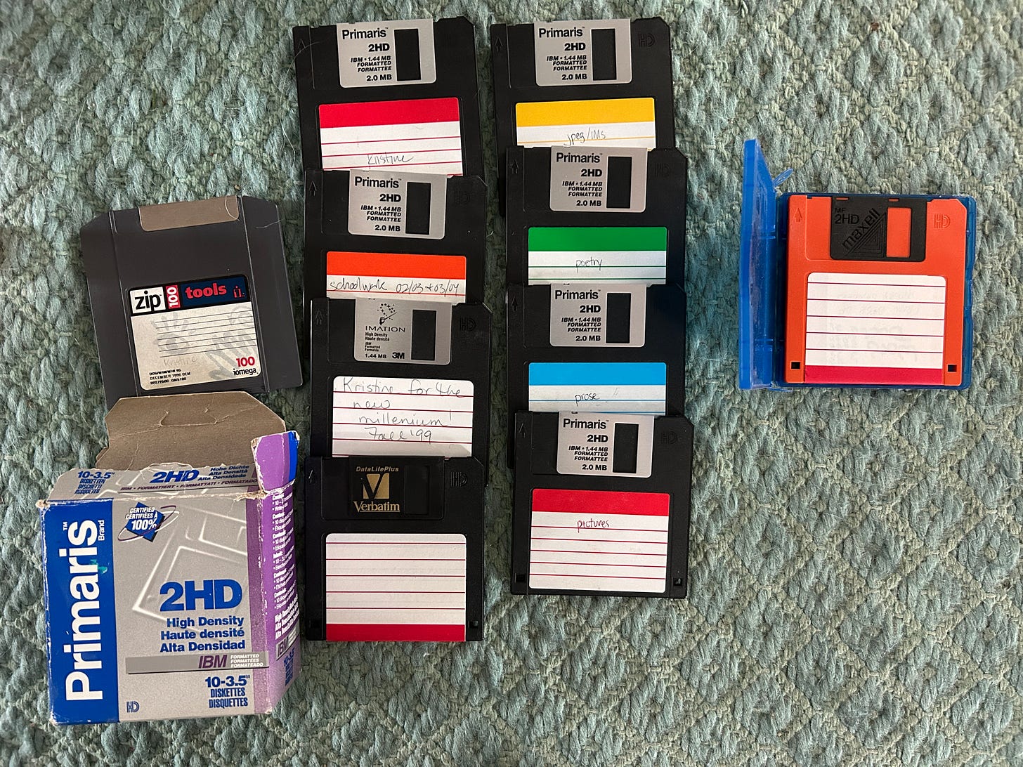 I lost so much work when floppies died, when Corel WordPerfect nosed out, when Hotmail deleted the email account of my teenhood. I have lost more memories than the internet has kept, which seems impossible when one cannot escape the crunchy old haircuts of Livejournal and MySpace. The methods of “saving” your work have continued to evolve, and they say the Wayback Machine holds it all now, but during my formative writing years, the technology shifted so often—and I had swerved from Apple to PC to Mac to PC—that nothing I’d saved myself is compatible anymore, nothing opens anymore, nothing is retrievable. Everything has surged forward and unless I give it to the Cloud now, I risk losing access. It comforts me to know the old me is all there, in those floppies that I cannot access, like a bulwark against the future. The self they hold cannot be reclaimed, but they hold her nevertheless.